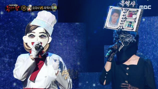 가왕 ‘아기염소’에 도전하는 복면 가수 1라운드 듀엣 대결에서 복면가수 '요리사와 흑역사'는 유미의 미녀는 괴로워 OST ' 별 '을 선곡해 열창했다.