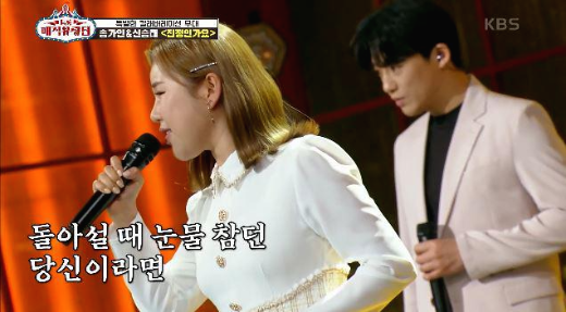 트로트 여신 송가인과 신승태가 트롯 매직유랑단에서 김연자의 ‘진정인가요’ 로 듀엣 무대를 완벽하게 소화했다.
