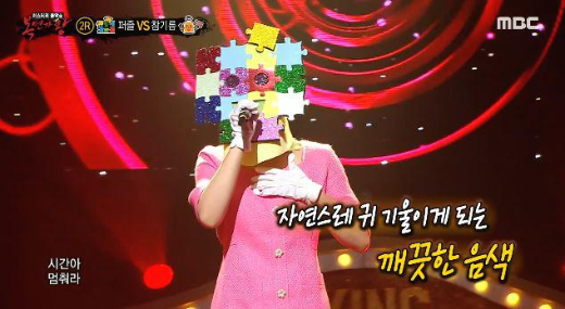 가왕 ‘5월의 에메랄드’에 도전하는 복면 가수 2라운드 솔로 대결에서 복면가수 '퍼즐'은 다비치의 ' 시간아 멈춰라 '를 선곡해 열창했다.