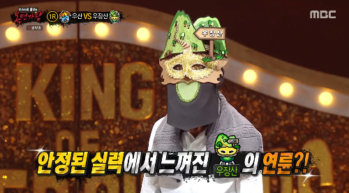 가왕 ‘빈대떡 신사’에 도전하는 복면 가수 2라운드 솔로 맞대결에서 복면가수 '우장산'는 변진섭의 ' 홀로된다는것 '을 선곡해 열창했다.