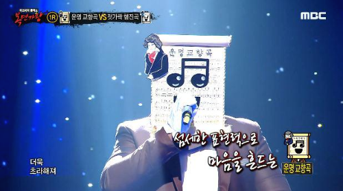 가왕 ‘빈대떡 신사’에 도전하는 복면 가수 2라운드 솔로대결 에서 복면가수 '운명 교향곡'은 윤종신의 ' 좋니 '를 선곡해 열창했다.