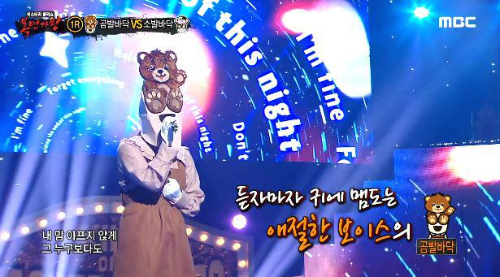 가왕 ‘빈대떡 신사’에 도전하는 복면 가수 2라운드 솔로 맞대결에서 복면가수 '곰발바닥'은 허각의 ' Hello (헬로) '를 선곡해 열창했다.