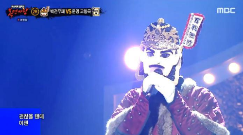 가왕 ‘빈대떡 신사’에 도전하는 복면 가수 3라운드 복면 가왕 도전자 결정전에서 복면가수 '백전무패'는 얀의 ' 그래서 그대는 '를 선곡해 열창했다.