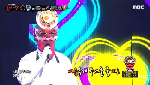 가왕 ‘곰발바닥’에 도전하는 복면 가수 2라운드 솔로대결 에서 복면가수 '김치볶음밥을 잘 만드는 남자'는 최백호의 ' 낭만에 대하여 '를 선곡해 열창했다.