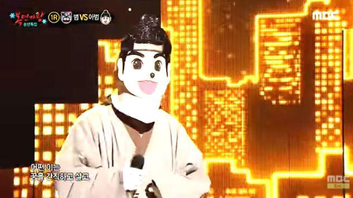 가왕 ‘겨울아이’에 도전하는 복면 가수 2라운드 솔로대결 에서 복면가수 '아범'은 한영애의 ' 누구없소 '을 선곡해 열창했다.