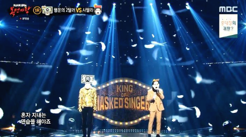 가왕 ‘겨울아이’에 도전하는 복면 가수 1라운드 듀엣대결 에서 복면가수 '행운의 2달러와 사딸라'는 V.O.S의 ' 눈을보고말해 '를 선곡해 열창했다.