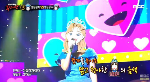 가왕 ‘겨울아이’에 도전하는 복면 가수 2라운드 솔로대결 에서 복면가수 '얼음공주'는 엄정화의 ' 하늘만 허락한사랑 '을 선곡해 열창했다.