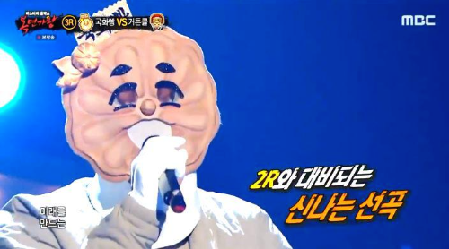 가왕 ‘겨울아이’에 도전하는 복면 가수 3라운드 복면 가왕 도전자 결정전에서 복면가수 '국화빵'은 조용필의 ' 미지의 세계'를 선곡해 열창했다.