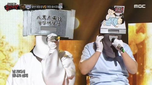 가왕 ‘누렁이’에 도전하는 복면 가수 1라운드 듀엣대결 에서 복면가수 '팔만대장경과 대장내시경'은 김돈규, 에스더의 ' 다시 태어나도 '를 선곡해 열창했다.